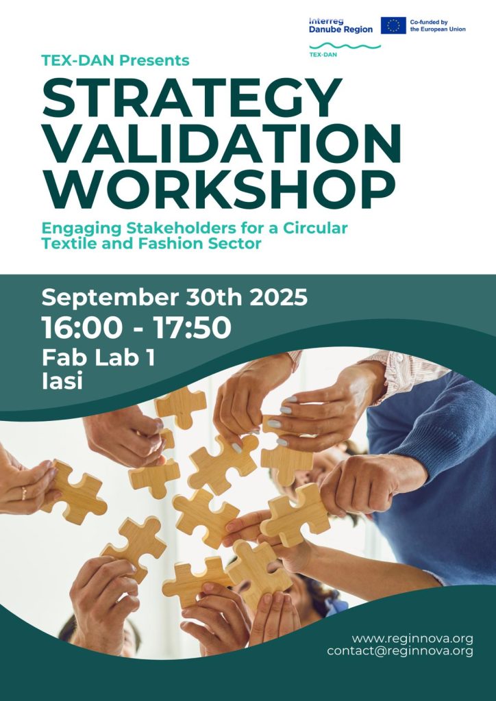 Marți, 30 septembrie 2025, 16:00–17:30, ne întâlnim la Fablab 1, Iași pentru un atelier de validare a strategiei TEX-DAN. În 90 de minute, vei contribui direct la recomandările care vor ghida tranziția către circularitate, digitalizare și branduri românești mai competitive. Evenimentul va oferi și o prezentare scurtă referitoare la contextul actual și direcțiile strategice la nivel național și european, și va încuraja adopția de soluții și idei în linie cu viziunea strategică. Participarea este gratuită, pe bază de înscriere (locuri limitate).