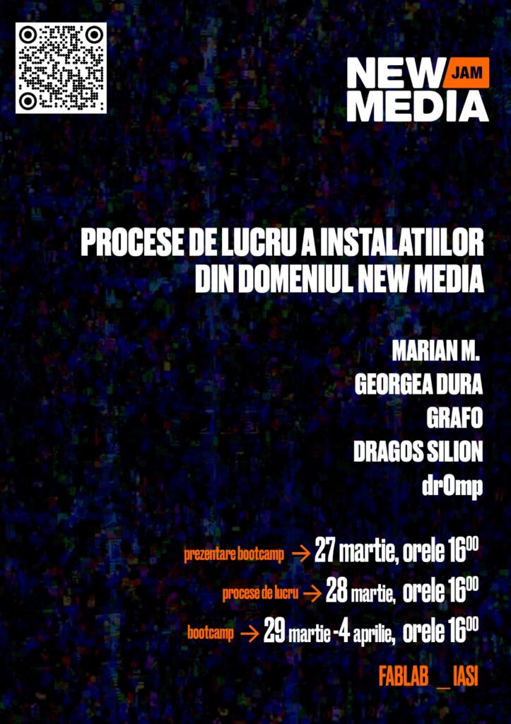 NewMediaJam ajunge la a 4-a ediție, continuând un program intensiv dedicat artei digitale, tehnologiei creative și instalațiilor interactive, desfășurat la FabLab Iași între 27 martie și 4 aprilie 2026, în cadrul căruia New Media Bootcamp include, pe 28 martie, o sesiune de prezentări dedicată proceselor de lucru din instalațiile new media, susținută de Marian M., […]